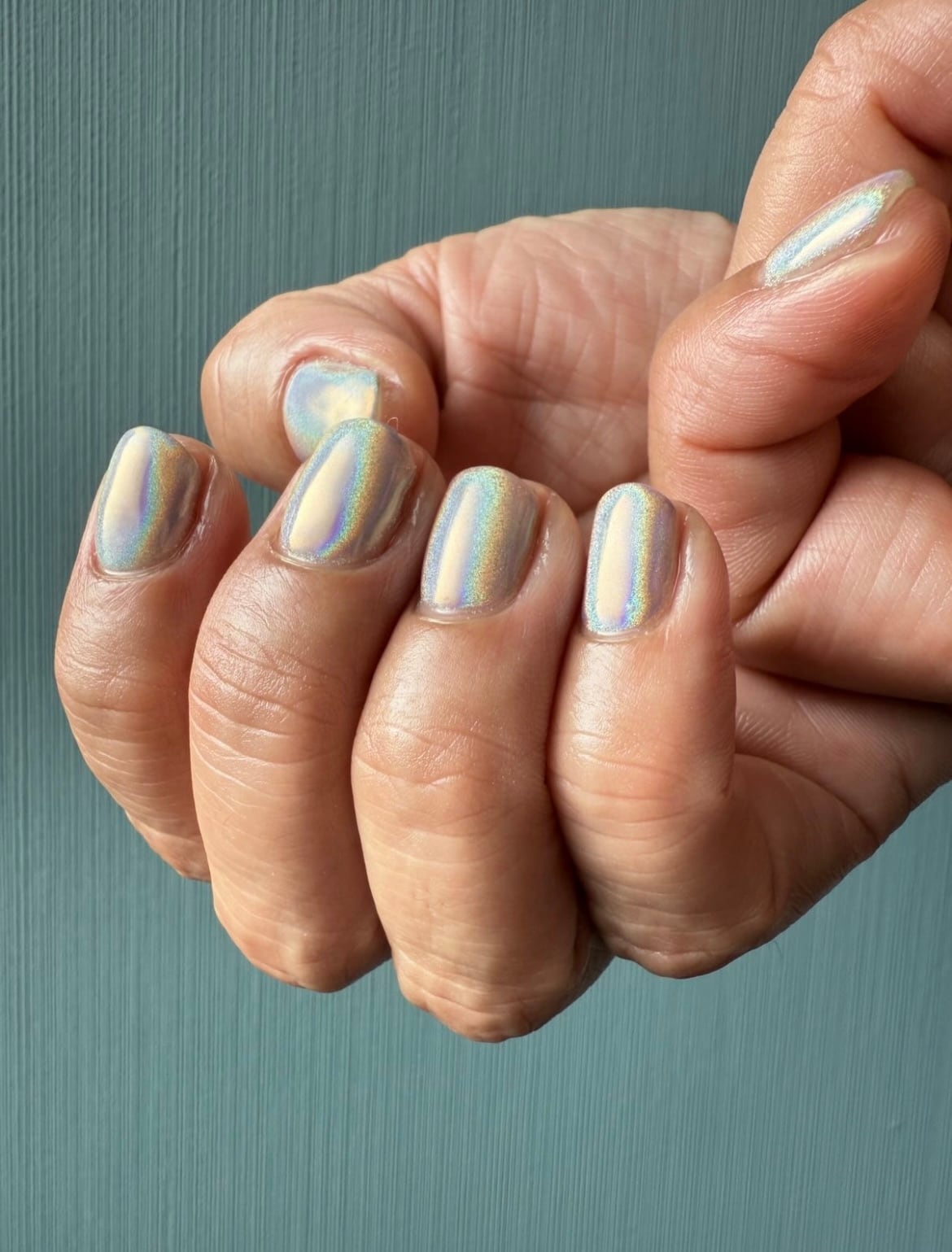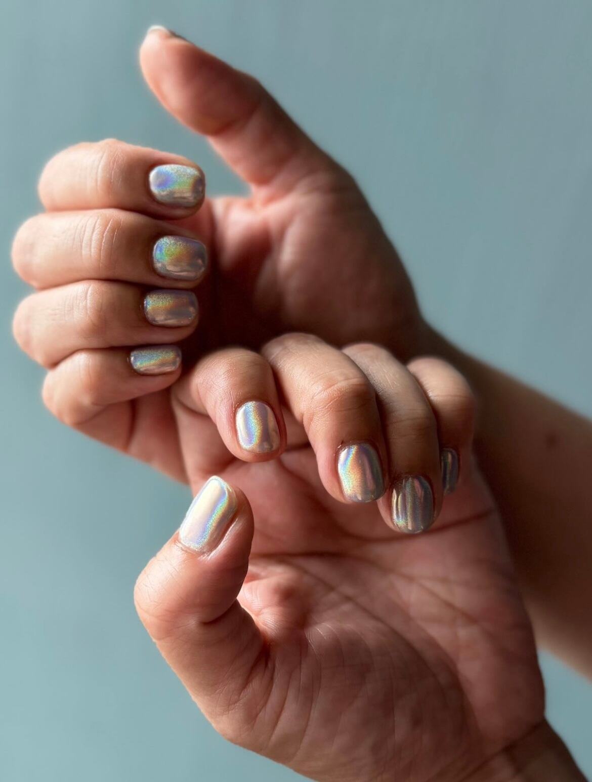 ミラーワンカラーのネイルメニューは、光を反射する美しい仕上がりが魅力です。